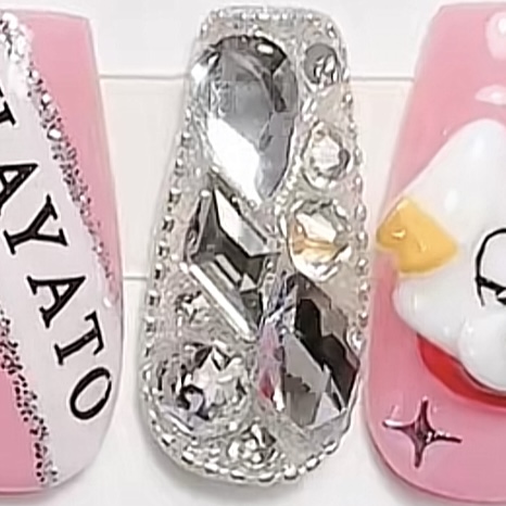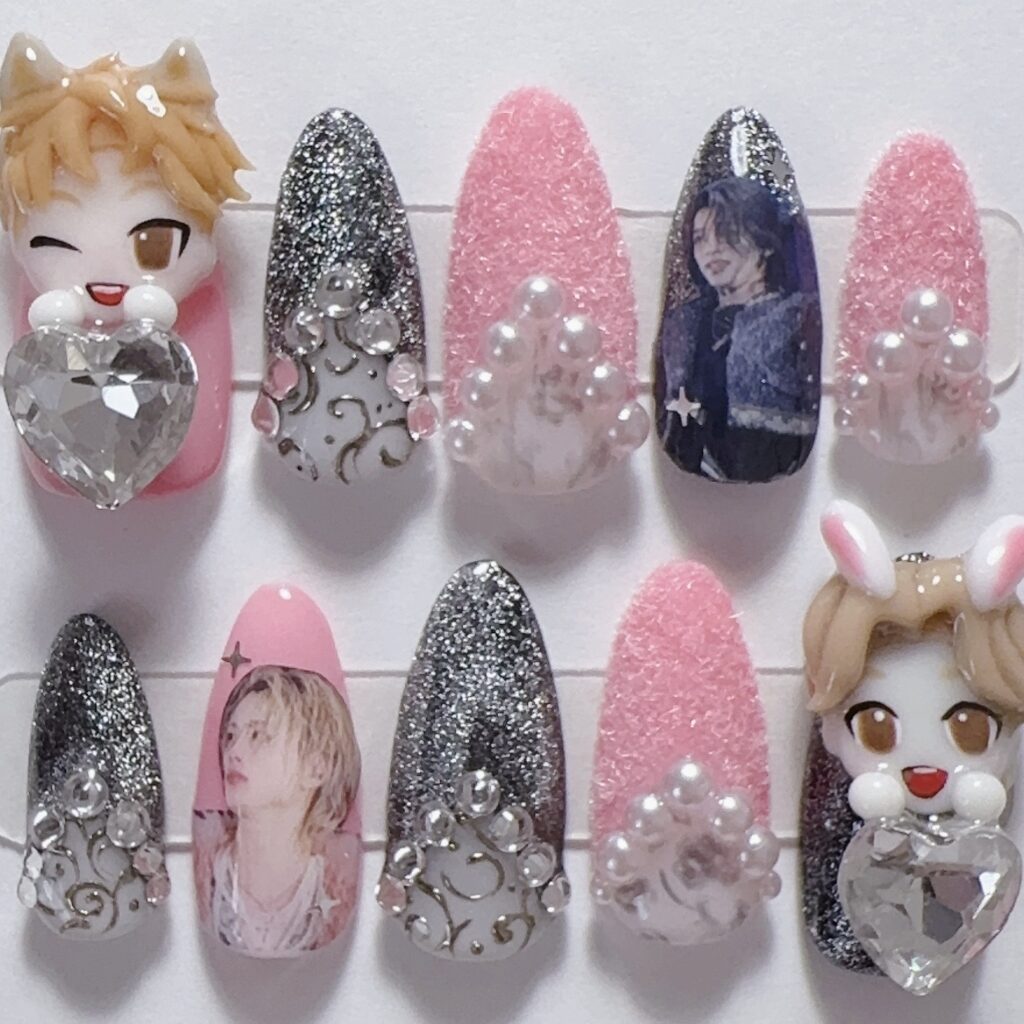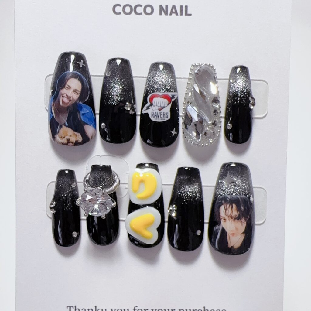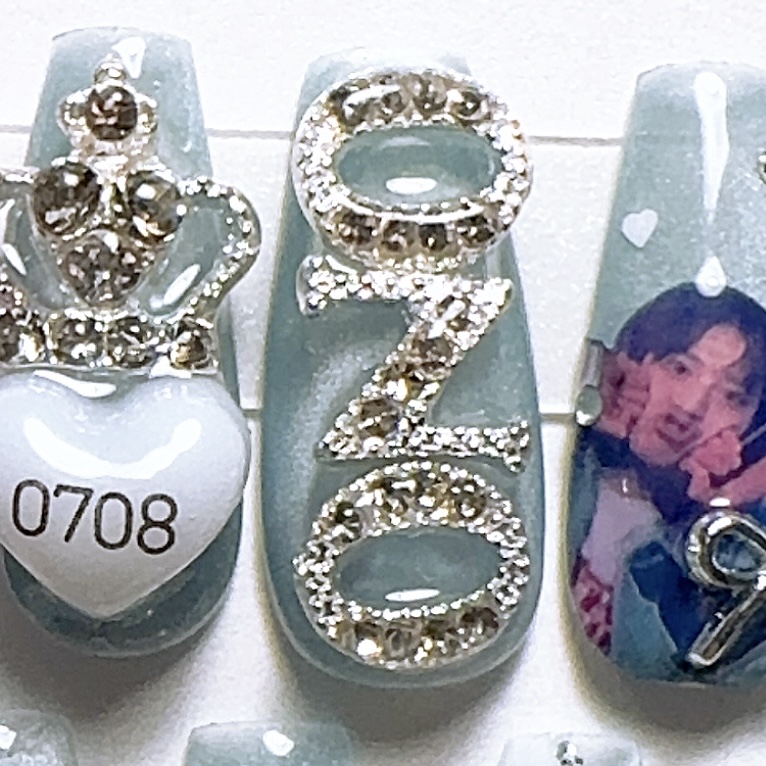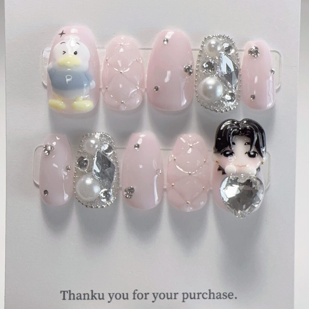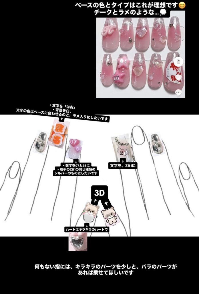推しの衣装に合わせたデザインネイル。複雑な模様やデザインの場合は追加料金になるので、お見積もりいたします。