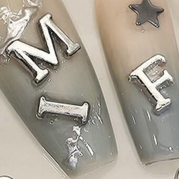 ストーンがついた小さめのアルファベットパーツ。1粒500円になります。推しのイニシャルや名前を入れたり、3Dに持たせることもできます。