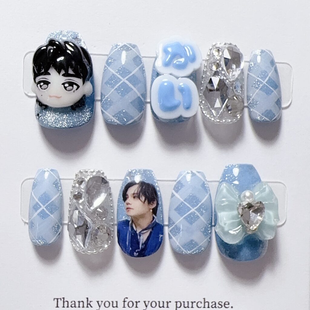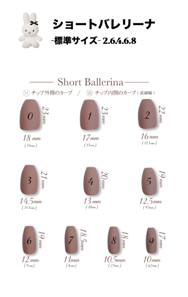 一番短く長さがほぼない、自爪と同じくらいのチップです。長い爪が苦手な方にオススメ。3Dは顔のみでしたら乗せることができます。